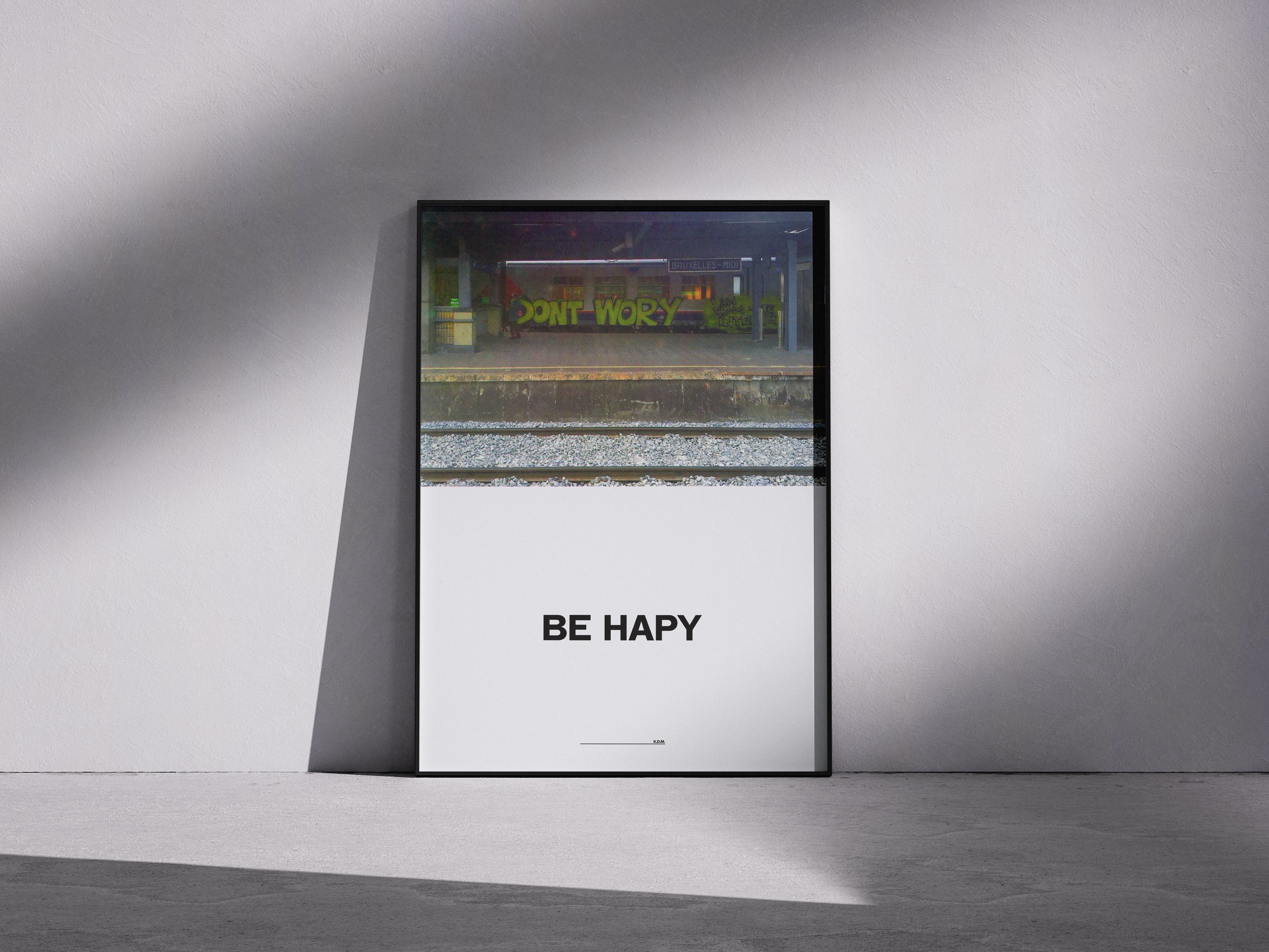 This limited edition screen-print is based (with permission) on the work of graffiti artist Good Guy Boris, who sprayed a simple message on the side of a train wagon sometime in 2013: DONT WORY.